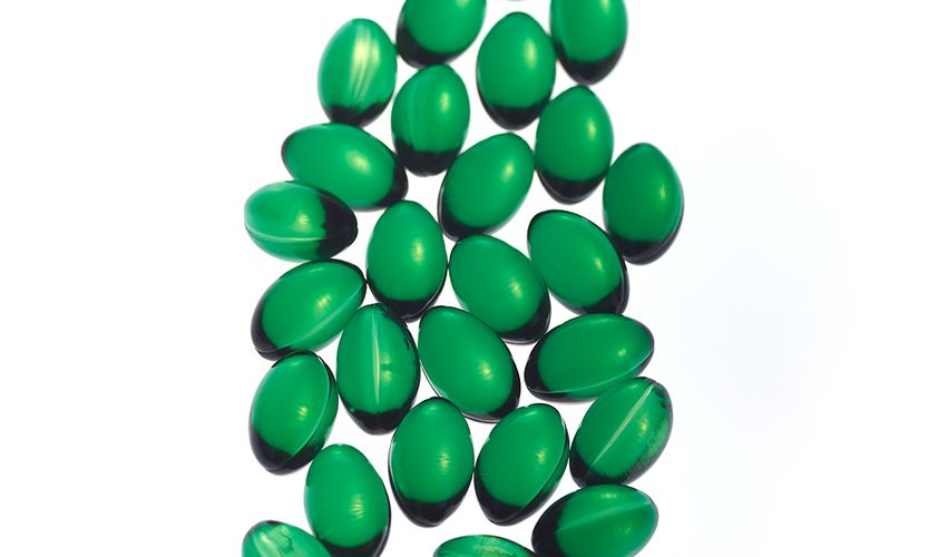 Polysorbate Emulsifiers, Medium Chain Triglycerides (MCT derived from coconut) Oil, Beta Caryophyllene, Chamomile Oil. Gelatin Shell: Bovine-derived Gelatin, Glycerin, Sorbitol, Water and Artificial Coloring which includes Blue 1, Yellow 5, Blue 2, Red 40