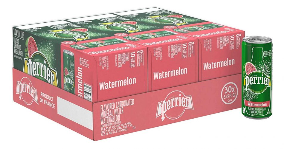 Perrier Watermelon Flavored Carbonated Mineral Water, 8.45 Fl Oz (30 Pack) Slim Cans
